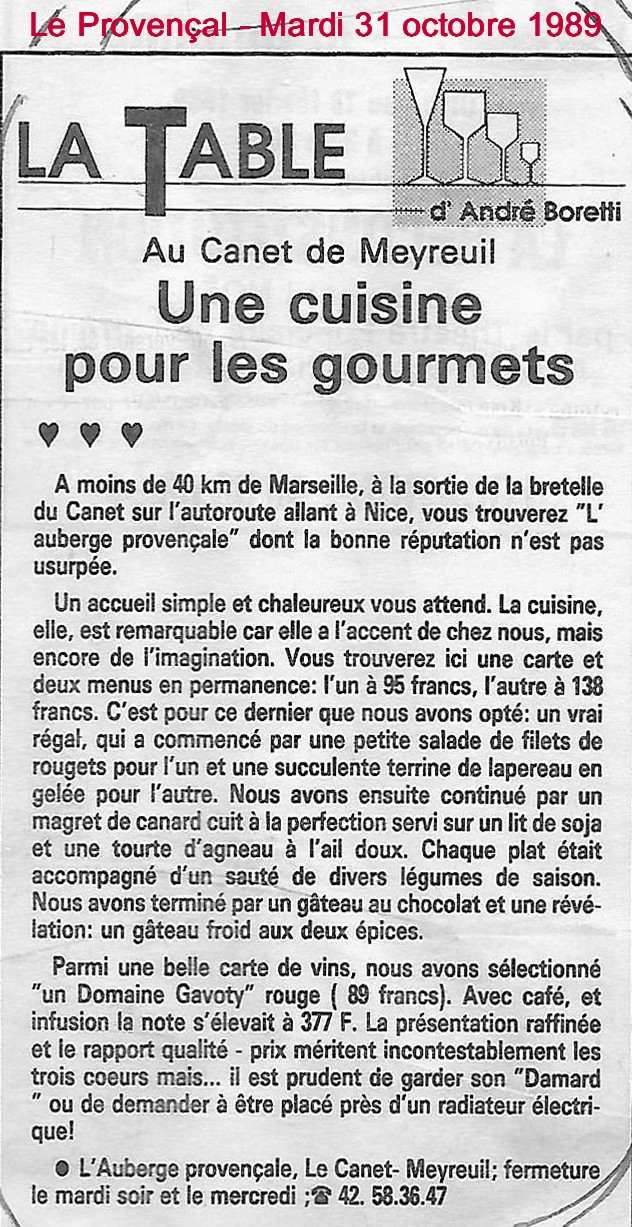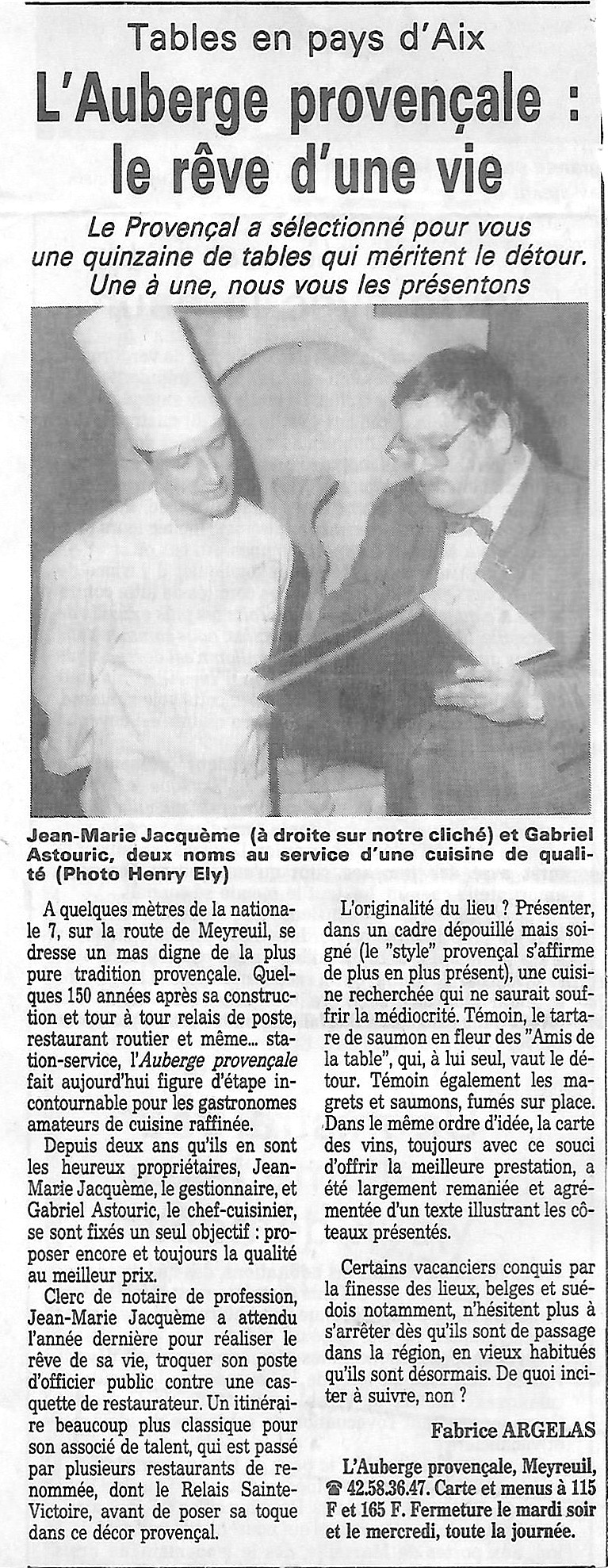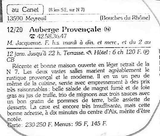 l'Auberge Provençale de Meyreuil est un restaurant bien connu
