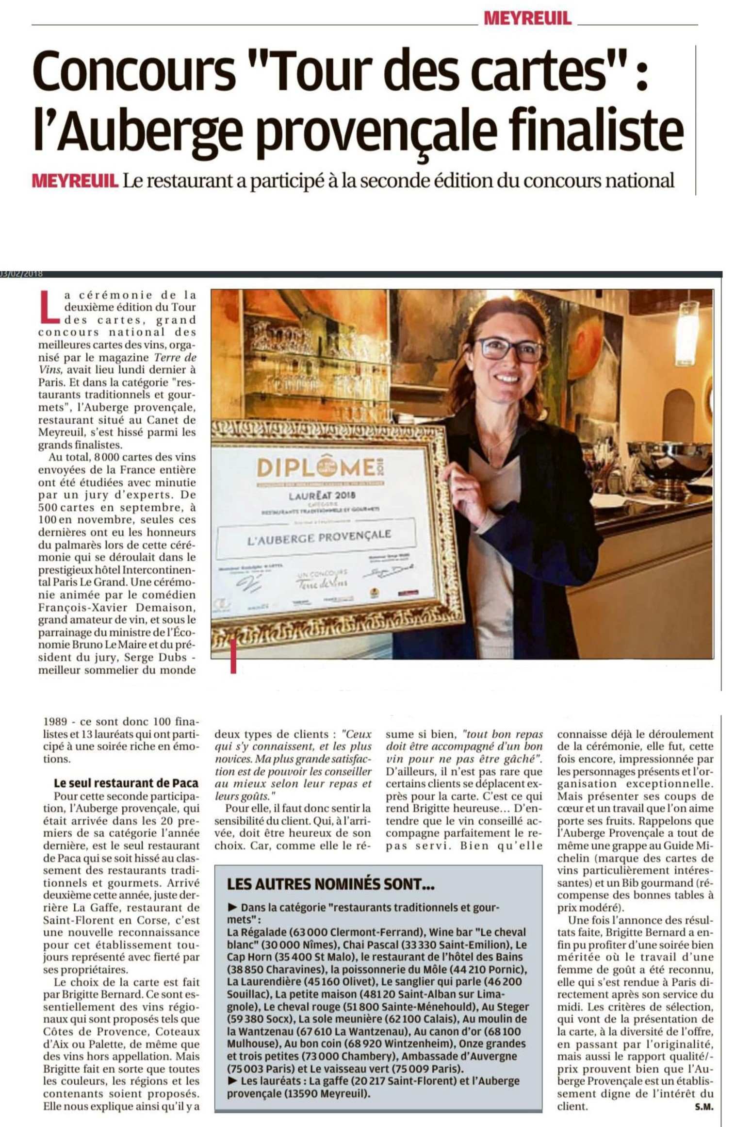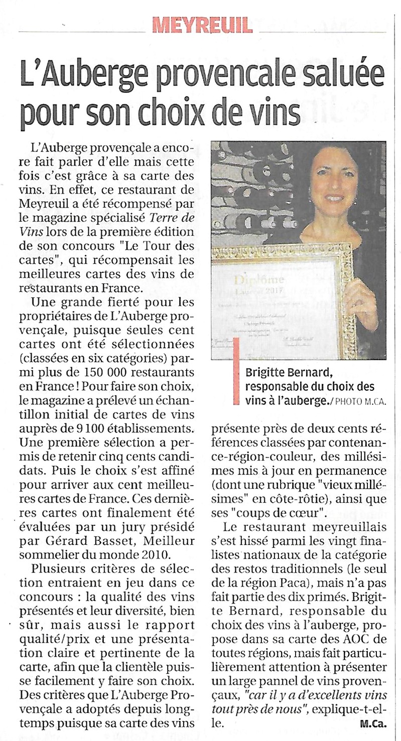 PAR LE MAGAZINE TERRE DE VINS La carte des vins de l'Auberge Provençale est